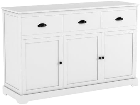 〖Modern Buffet Sideboard & Storage Cabinet〗: This sideboard table features 3 drawers and 3 doors with white finish create instant charm in your home. The elegant white finish and stylish design add a sense of elegance. And, it is a perfect decoration for your house.