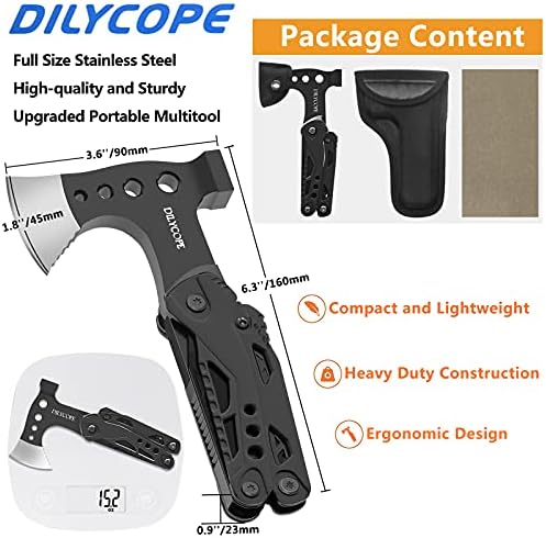 【High-Quality and Well-Made】Sturdy and durable multitool hatchet, made of high-grade stainless steel with durable black oxidation finish,multi-purpose folding camping tool set, gifts for dads who have everything from daughter son, essential camping supplies for home travel and survival hiking hunting fishing whether as camping gear and equipment or survival kit.