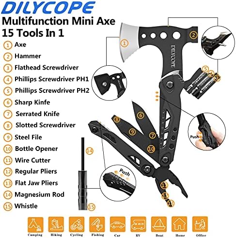 【Perfect and Unique Gift】If you are looking for a cool unique gift for your dad, boyfriend, husband or grandpa? This mini axe multitool is the best personalized gifts for him, makes for a cool gadget whether Christmas holiday, Father’s Day, birthday, or anniversary gifts, it’s a special present for your dad as camping accessories or survival gear and equipment.
