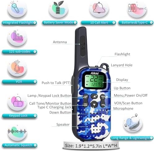 Aikmi walkie talkies for kids are fantastic gifts for kids, especially toys for kids aged 5, 6, 7, 8, 9, 10, 11.Holiday gifts for boys and girls, such as Thanksgiving, Christmas, Children’s Day or Birthday gifts.