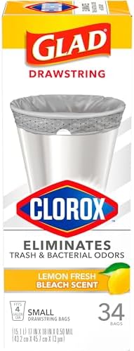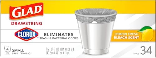 Glad Trash Bags, Small Drawstring Garbage Bags with Clorox, 4 Gallon Grey Trash Bags, Lemon Fresh Bleach Scent, 34 Count (Package May Vary)