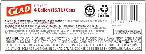 4 GALLON GREY SMALL TRASH BAGS: Glad wastebasket liners are great for small garbage cans, general household needs and just the right size for cars and on-the-go messes