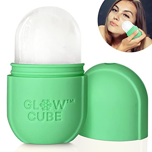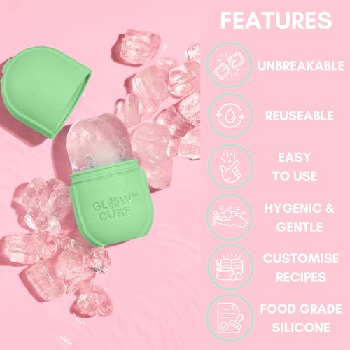 Glow Cube Ice Roller For Face Eyes and Neck To Brighten Skin & Enhance Your Natural Glow/Reusable Facial Treatment to Tighten & Tone Skin & De-Puff The Eye Area (Pastel Green)