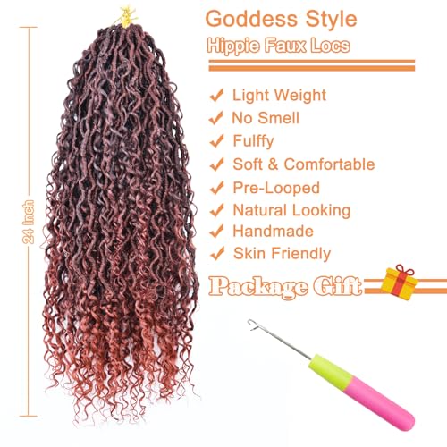 Goddess Locs Crochet Hair: 24 Inch Boho Faux Locs Crochet Hair Pre Looped 6 Packs New Crochet Locs with Curly Ends for Women (1B/350, 24 Inch)