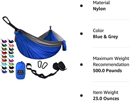 Gold Armour Camping Hammock – Portable Hammock Single Hammock Camping Accessories Gear for Outdoor Indoor Adult Kids, USA Based Brand (Blue & Grey)