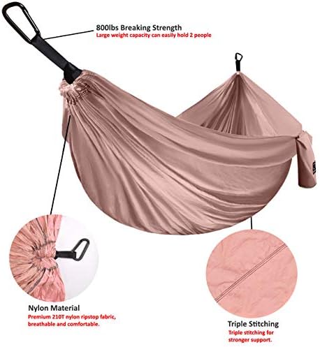 Gold Armour Camping Hammock – XL Double Hammock Portable Hammock Camping Accessories Gear for Outdoor Indoor with Tree Straps, USA Based Brand (Rose Gold)