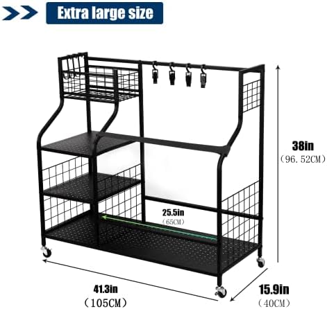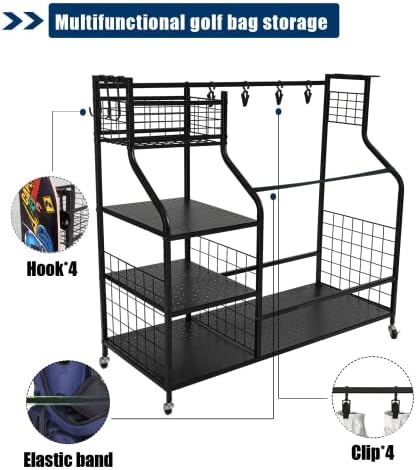 【Multiple Occasions Available】This sports equipment organizer is perfect for any place, indoor or outdoor, such as game room, garage, basement, gym, office or school, golf club, golf course, etc. It can keep your space neat and organized.