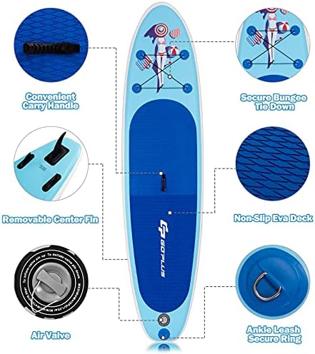 Goplus 10/ 11FT Inflatable Stand up Paddle Board Latest Inkjet Process Anti-Fading 6.5” Thick SUP with 3 Fins, Non-Slip Deck, Adjustable Paddle, Hand Pump, Carry Bag, Leash