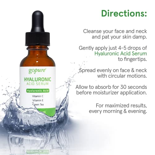 goPure Hyaluronic Acid Serum – Face Serum for Glowing Skin with Vitamin C and E, and Green Tea, Anti-Aging Serum to Visibly Improve Dry and Wrinkled-Looking Skin – 1 fl oz