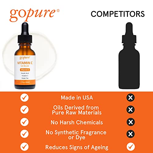 goPure Vitamin C Serum for Face – Radiance-Boosting Face Serum for Glowing Skin, Formulated with Antioxidants Vitamin C and Ferulic Acid to Support more Even-Toned and Brighter-Looking Skin – 1 fl oz