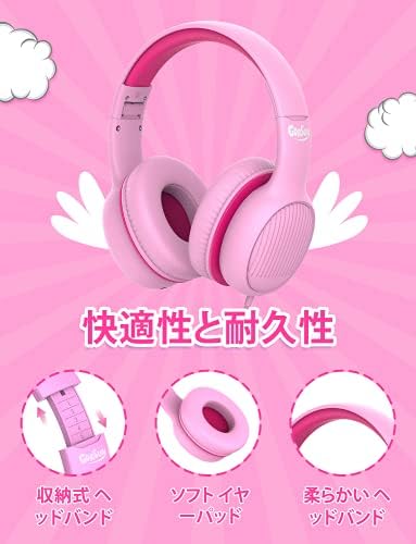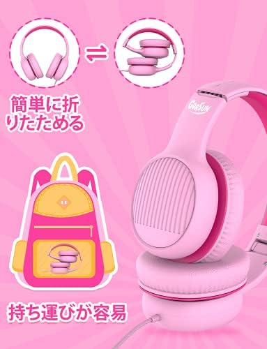 gorsun Premium A66 Kids Headphones with 85dB/94dB Volume Limited, in-line HD Mic, Audio Sharing, Foldable Toddler Headphones, Adjustable, Children Headphones Over-Ear for School Travel, Pink