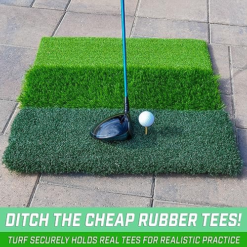 HUGE SIZE: 24 in x 24 in Tri-Turf golf hitting artificial grass mat for mastering your swing; Compatible with real tees and engineered to last thousands of practice swings to serve as your personal driving range and a great addition to any golf net