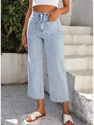 GRAPENT Wide Leg Jeans for Women High Waisted Straight Leg Stretchy Cropped Denim Pants with Pockets Jean Trousers