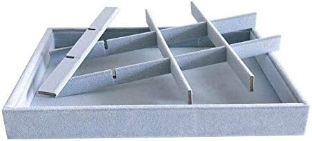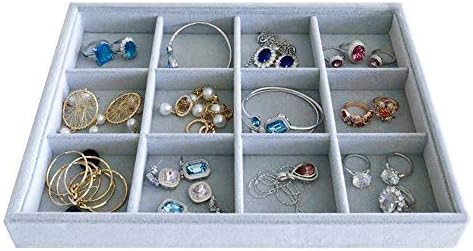 Grey Velvet Stackable Organizer Premium Grade Fabric Soft Protection for Jewelry Collection Removable Rearrangeable 12-Grid Drawer Divider Small Space Storage Ring Necklace Earring