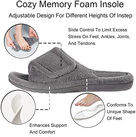 GRITHEIM Women’s Orthotic Arch Support Slippers Fuzzy Adjustable Orthopedic Slippers for Plantar Fasciitis Furry Slide Slippers for Ladies