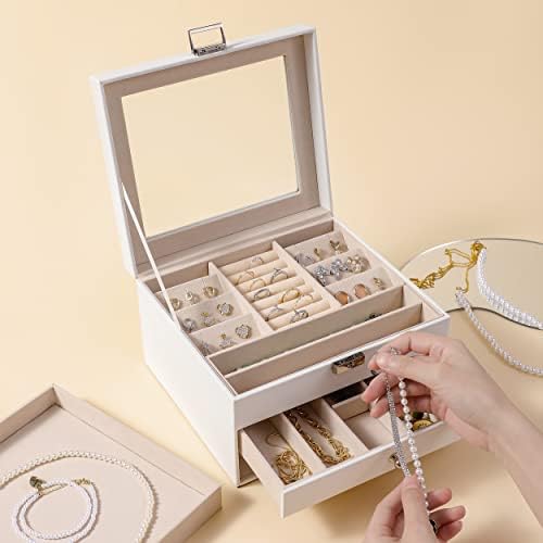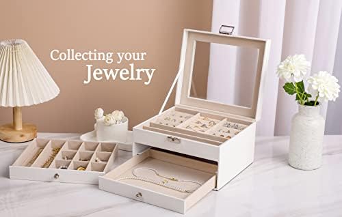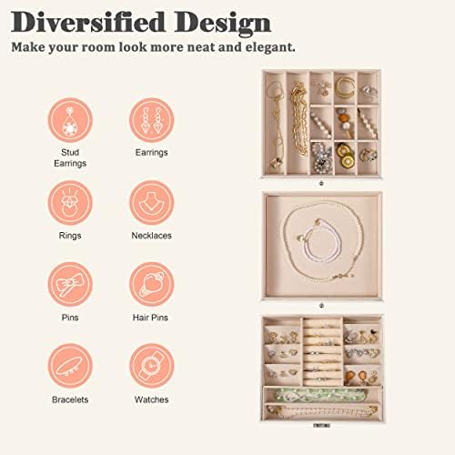 【Elegant Designed Jewelry Box】: The large jewelry storage box, featuring the timeless combination of classic white and gold, stands as a testament to exquisite design. It brings an air of elegance to your space, effortlessly enhancing the ambience of your room. This unique pairing exudes an air of elegant charm, elevating its status as a prized addition to your collection.