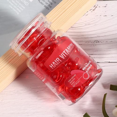 Hair Care Vitamin Capsules, 30pcs/Bottle Hair Damage Repair Essential Oil Anti Frizz Moisturizing Conditioner Hair Care Essential Oil, Enhance Hair Elasticity and Toughness[Red]
