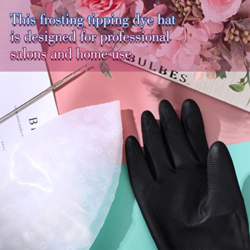 Hair Coloring Highlighting Cap and Hook Black Hair Dye Gloves Reusable Hair Dye Kit Hair Highlighting Kit Gloves for Hair Coloring Silicone Highlight Cap Hair Coloring Accessories for Salon Home