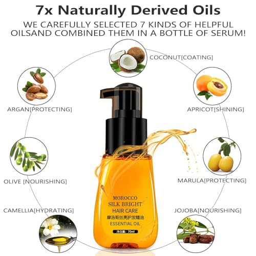 Hair Oil Serum for Frizzy Hair,Smooth & Shine Anti-frizz Hair Serum,Morocco Oil Silk Bright Hair Frizz-free Serum,Smoothing Natural Hair Care Essential Oil Reduce Dry,Curly,Wavy,Damaged Hair (2Pcs)