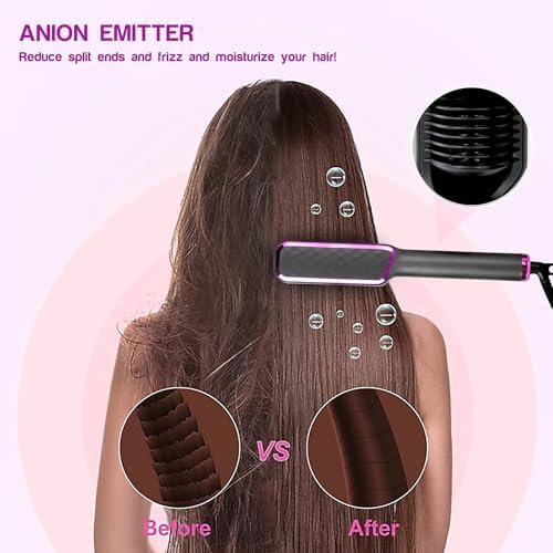 Hair Straightening Comb Negative Ion Hair Straightener Brush Hot Brush Hair Straightener with Auto Temperature Lock & Auto-Off Function, Anti-Scald for Professional Hair Salon at Home