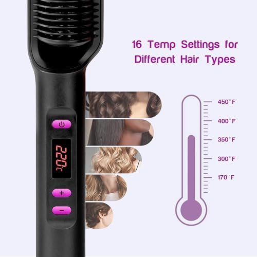 【LED Display & Auto-off】: There is a smart LED screen on the handle, and the temperature is completely visualized so that you can know the current temperature status of the hot brush at any time. Built-in safety function, this hair straightening comb will automatically shut off after 60 minutes of non-use to ensure maximum safety.