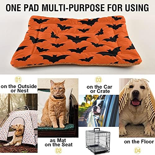 Happy Halloween Dog Bed Mat for Small Dog Puppy Cat Kitten, Halloween Bats Pattern Ultra Soft Pet Bed Mattress for Crate with Anti-Slip Washable, Orange, 18 x 24 Inches