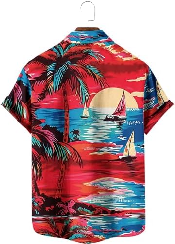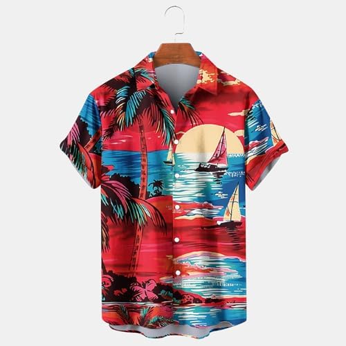 Hawaiian Shirt Short Sleeve Men Summer Beach Tropical Regular-Fit Button-Down Shirts Trendy Graphic Camp Collar Shirt
