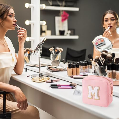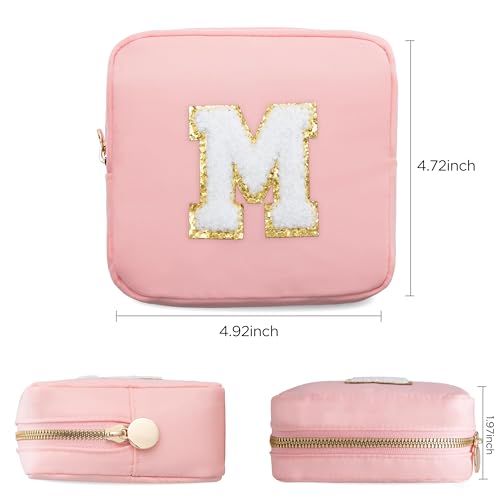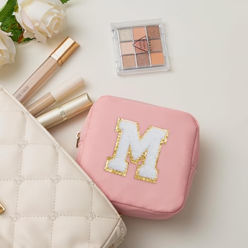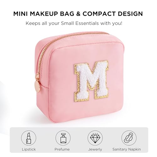 HBselect Graduation Gifts for Her Small Makeup Bag Personalized Initial Letter Mini Makeup Bags Nylon Chenille Letter Patch Cosmetic Bag Cute Waterproof Pouch Coin Purse for Women Teen Girls