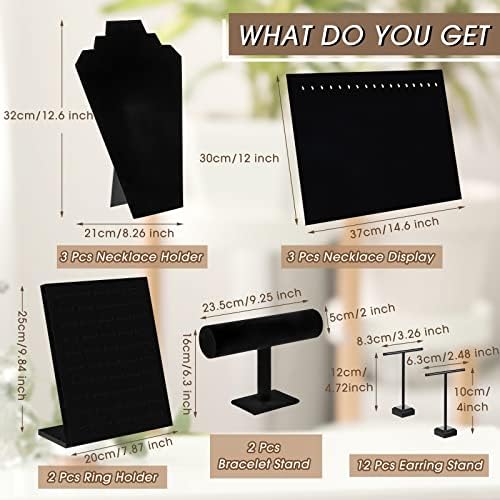Henoyso 22 Pcs Velvet Jewelry Display Set Jewelry Display for Selling Necklace Stand Bracelet Holder T Shape Earring Stand (Black)