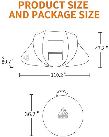 ⛺ Family Tent: There are two sizes to choose.2 person tent 102.3×41.3×59 inch,4 person tent 110.2×47.2×78.7 inch.You can choose the right instant tent according to your needs.