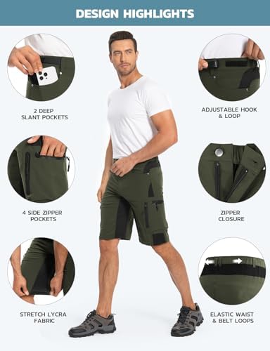 Hiauspor Men’s Hiking Cargo Shorts Lightweight Quick Dry Stretch MTB Shorts for Golf Fishing Tactical Outdoor Casual Shorts