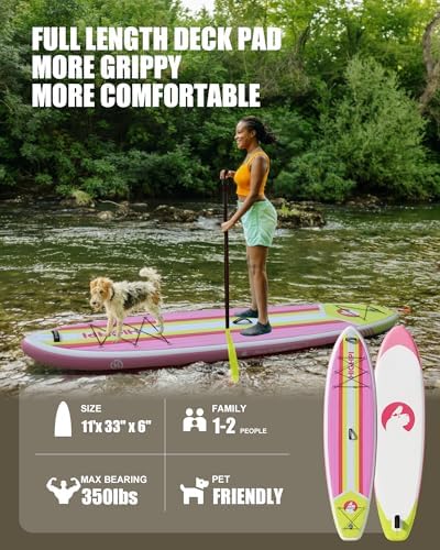 【Stable Design And Good Maneuverability】11’long x 33” wide x 6” thick, with weight capacity up to 350lbs.The extra wide SUP design is easy for beginners to stand up and keep balance. Ideal board for all skill levels with pets.