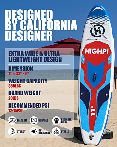 Highpi Inflatable Stand Up Paddle Board 10’6”/11′ Premium SUP W Accessories & Backpack, Wide Stance, Surf Control, Non-Slip Deck, Leash, Paddle and Pump, Standing Boat for Youth & Adult