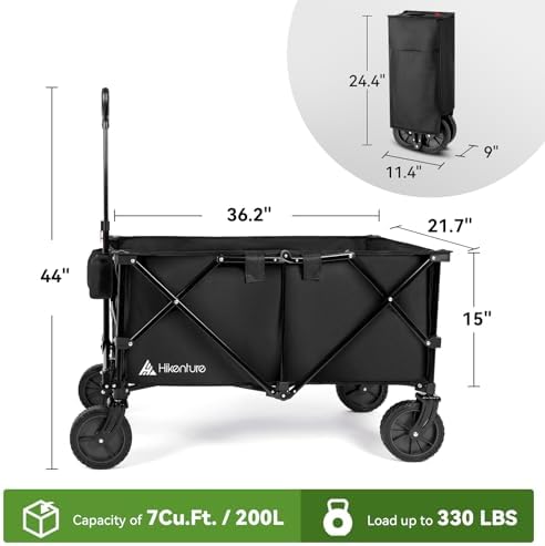 Be the first to review “Hikenture Collapsible Wagon with 200L Large Capacity, Utility Wagons Carts Heavy Duty Foldable, Portable Folding Wagon with All-Terrain Wheels, Garden Cart”