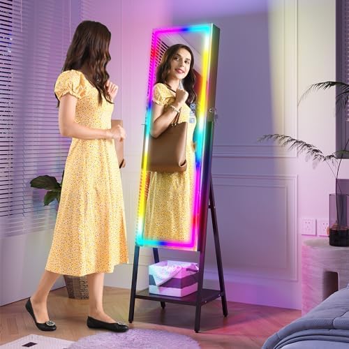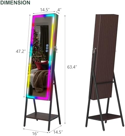 Be the first to review “HNEBC RGB LED Mirror Jewelry Cabinet,Standing Jewelry Armoire Organizer Full Length Mirror with Storage, Lockable Jewelry Mirror for Women’s Christmas Gift, 14 Lighting Modes (RGB-Brown)”
