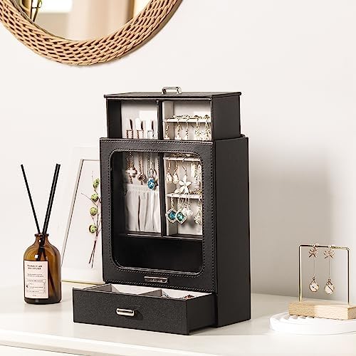 Homde Jewelry Box Small with Display Window, 2-Layer Jewelry Organizer, 2 Drawers, Jewelry Storage, Gifts Idea, Takes Up Little Space on the Dresser (Black)
