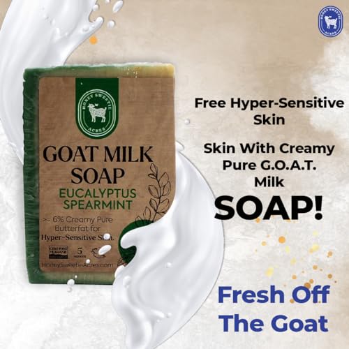 Honey Sweetie Acres Luxurious Eucalyptus Spearmint Goat Milk Soap | 5 oz Handcrafted Bar | Natural & Organic Skin Care | Anti-Bacterial & Moisturizing | Made in USA