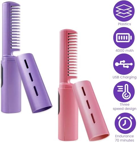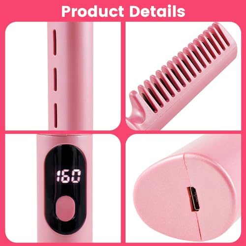 【Incorporated Comb Teeth Design】Differing from traditional hair straighteners, this hair straightener hot comb includes built-in toothed hair straightening combs. Once charged, it is easy to carry this portable hair straightener comb and maintain your exquisite hairstyle anywhere. Achieve straight hair from curly with just this portable hair straightener comb.