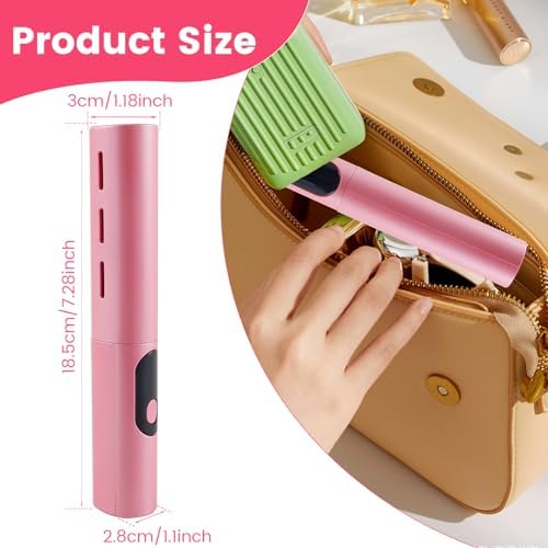 【Wireless and Portable】Measuring 18.5×3×2.8cm/7.28*1.18*1.10inch and designed with an ergonomic handle, this hair straightener comb is portable and comfortable to use. Its 4000mAh rechargeable and wireless design makes it easy to carry for travel, parties, and more.