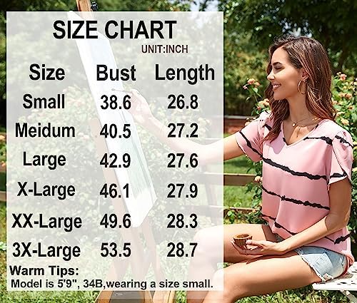 HOTGIFT Womens 2024 Summer Chiffon Tops Casual Short Sleeve Tunics
