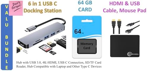 🥇【Authorized MarxsolBundle】12.76 x 8.86 x 0.71 Inches, 3.24 lbs. 1x HDMI 1.4b / 2x USB-A 3.1 / 1x USB-C 3.1 / 1x headphone/microphone combo / 1x Memory media card reader. WiFi, Bluetooth, HP TrueVision 720P Camera with integrated dual array digital microphones, Up to 11.5 Hours Battery Life, Snowflake black, + MarxsolAccessory includes 64GB Memory Card & 6-in-1 USB-C Docking Station Hub with USB 3.0, 4K-HDMI, USB C Connection, SD/TF Card Reader and HDMI & USB Cable, Mouse Pad