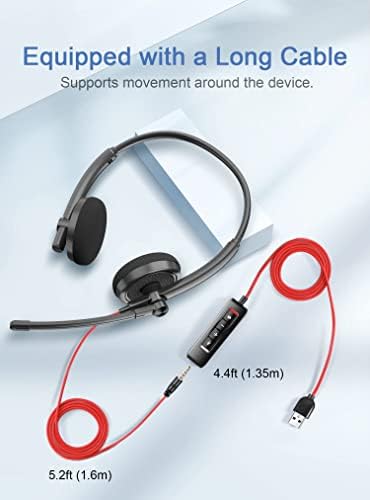 HROEENOI Premium USB Wired Headset with Noise-Cancelling Microphone, Ideal for PC, Laptop, Zoom Calls, Skype Meetings, Call Centers, and Home Office Use with In-Line Controls for Volume & Mic Mute