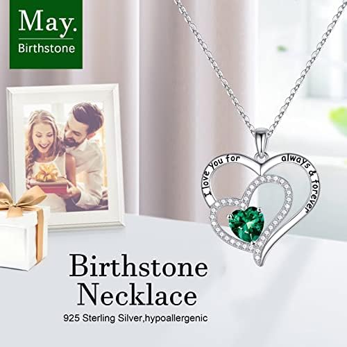Iefil Forever Love Pendant Birthstone Necklace for Women, 925 Sterling Silver Birthstone Necklace for Women Anniversary Valentines Day Gifts for Her Love Gifts for Women Girls