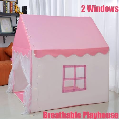 Indoor Play Tents for Girls Princess Castle Play Tent Girls Large Playhouse for Kids with Star Lights Tent for Children Indoor and Outdoor Games, 55” x 53” (DxH)