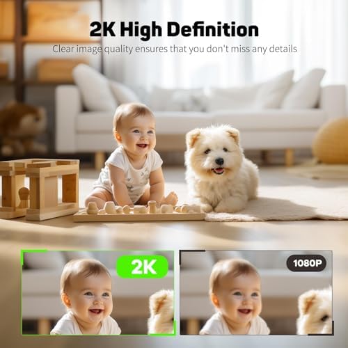 【2K High Definition & 360 Degree Panoramic View】 The security camera indoor provides 2K HD resolution with clear and smooth graphics and 355° horizontal and 90° vertical range of pan/tilt field of view, view every corner of your home at any time without missing every detail in the HD picture.