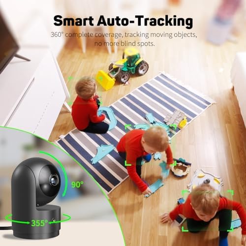 【AI Motion Detection & Smart Instant Alerts】The home indoor camera for home security features advanced smart AI motion detection, which supports tracking and recognizing people and pets. Users will get free AI detection alerts and tags in push messages, album tags. To reduce unnecessary notifications, upgrade the “”Location”” function to set a specific location and the Wi-Fi camera will quickly adjust to your predetermined shooting angle.