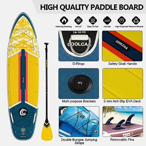 PACKAGE CONTENT AND CUSTOMER SERVICE: COOLCAA paddle board comes with a full accessory kit: high quality inflatable paddle board, 3-piece carbon fiber paddle, premium roller storage bag, 3 removable fins, dual chamber triple-action pump, 7mm ankle strap, 1 valve wrench, and instruction manual. We provide 2 years warranty for all ISPU. If there is any problem with the product, please feel free to contact us, we will give you a satisfactory answer within 24 hours.
