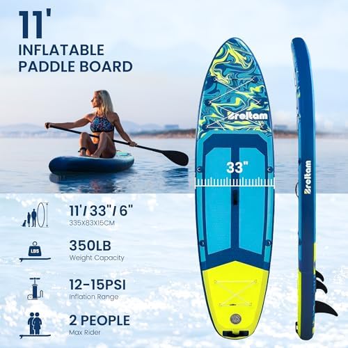 Inflatable Paddle Board Stand Up Paddleboard with Premium SUP Board Accessories, 11′ Wide Blow up Paddle Boards for Youth and Adult
