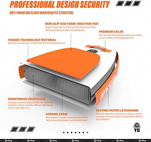 【Lighter and More Flexible】The TIGERXBANG Defender Collection inflatable paddle board is made of ultra-light military-grade PVC material, which has excellent wear resistance, toughness, and a long service life. With a size of 10′ x 31″ x 6″, the paddle board is lighter, more portable, and easier to operate, allowing paddlers to navigate various complex water flow environments with more flexibility.