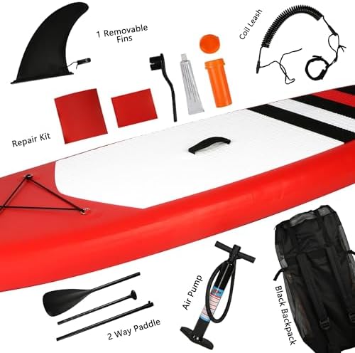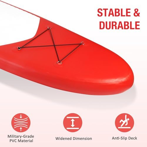 【HIGH QUALITY PADDLE BOARD】The inflatable stand up paddle board is 10 feet long, 31 inches wide and 6 inches thick. Our inflatable super stand up paddle board is made of military grade high quality PVC material for unparalleled strength, solid construction to prevent air leaks,and weight limit up to 275 lbs.